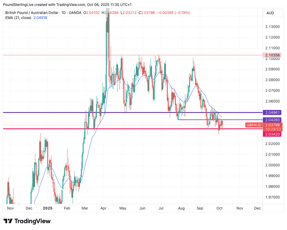 The pound to Australian dollar exchange rate (GBP/AUD) naturally reflects these dynamics, trading at 2.0372, down a quarter of a per cent on the day.