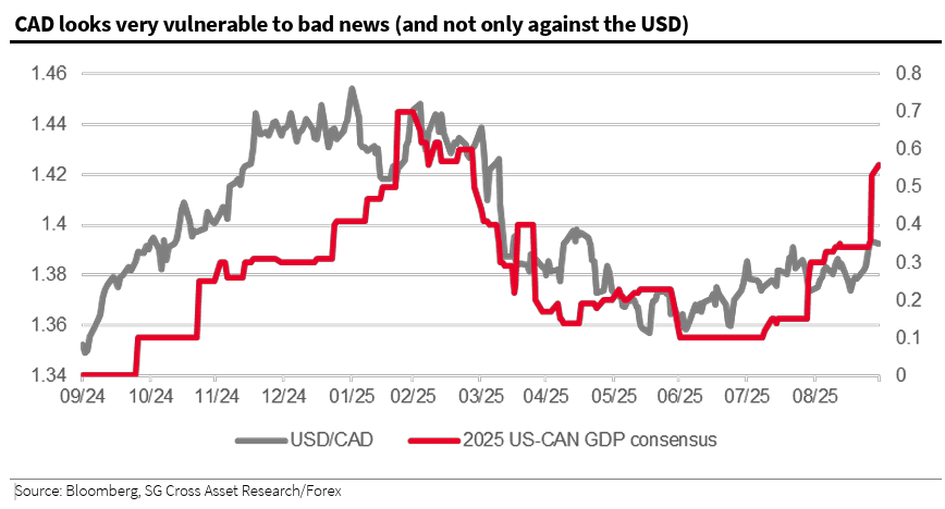 Research from Société Générale reveals just how vulnerable the Canadian Dollar is to a fresh lurch lower.