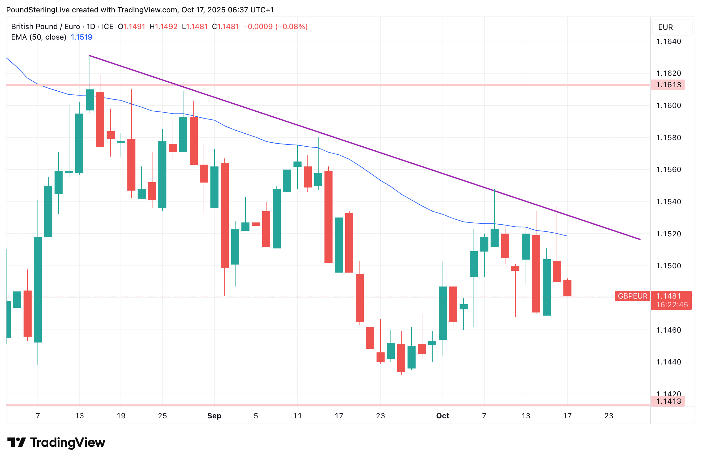 The down moves that follow those peaks have tended to be deep, ensuring the GBP/EUR exchange rate has steadily sunk through the August-October period.