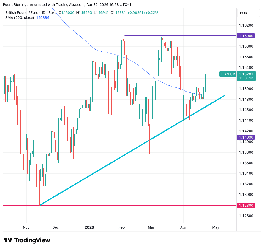 The pound-euro exchange rate has been caught in a seemingly intractible phase of consolidation for two weeks, but Wednesday's advance to 1.1525 took it to its highest level since the end of March. This means money transfer rates at all-in zero-fee providers are close to 1.15 at these levels.