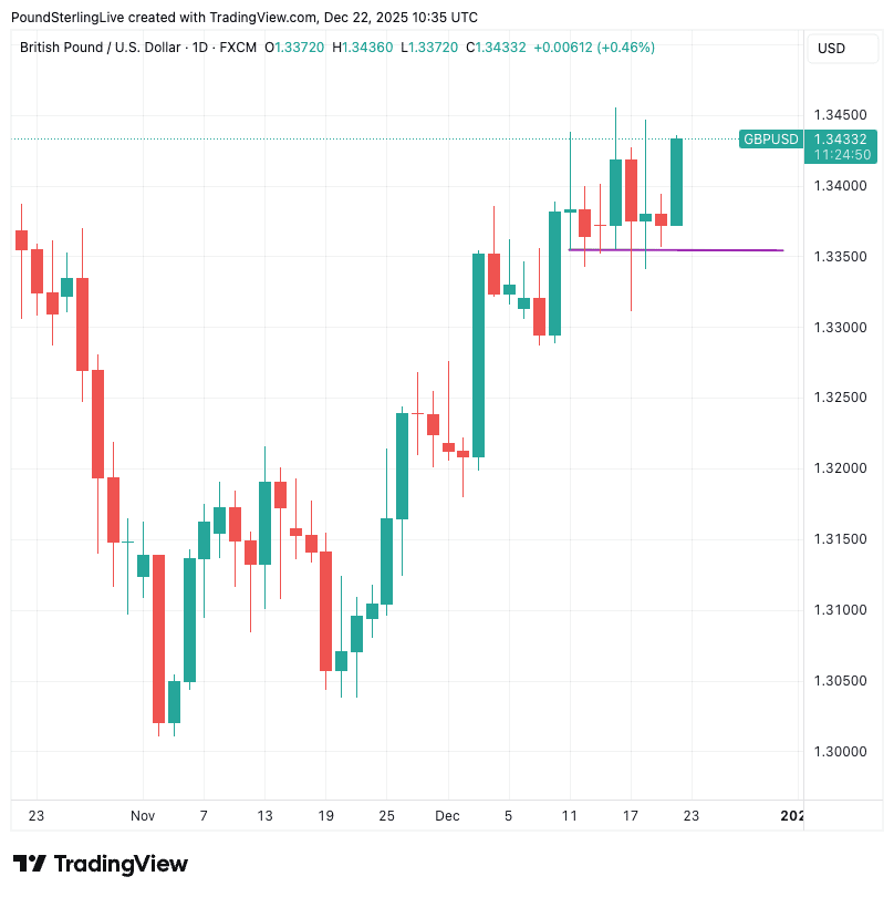 It has carved out some short-term 'mini' uptrends against both the euro and dollar, which should hold into early 2026, particularly now that news and data should dry up over the Christmas period:
