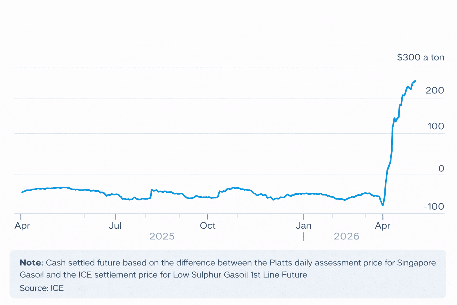 Above: The spread between 'east' and 'west' diesel has surged as Asian dieserl prices rocket higher.