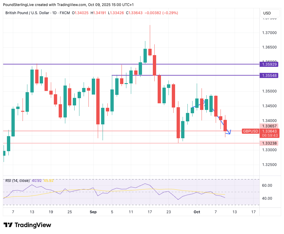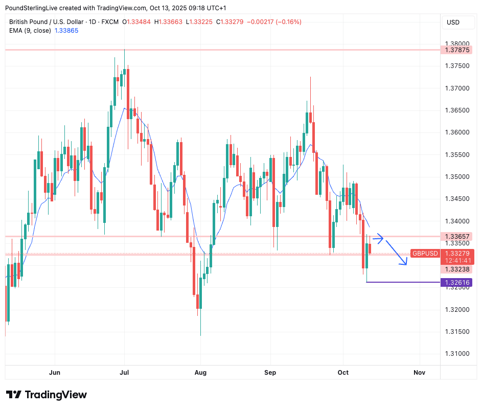 However, GBP/USD recovered to 1.3350 on Friday, having been as low as 1.3262 the day before, after the U.S. retaliated against a Chinese rare earths export ban with a universal 100% import tariff on Chinese goods, set to start on November 01.